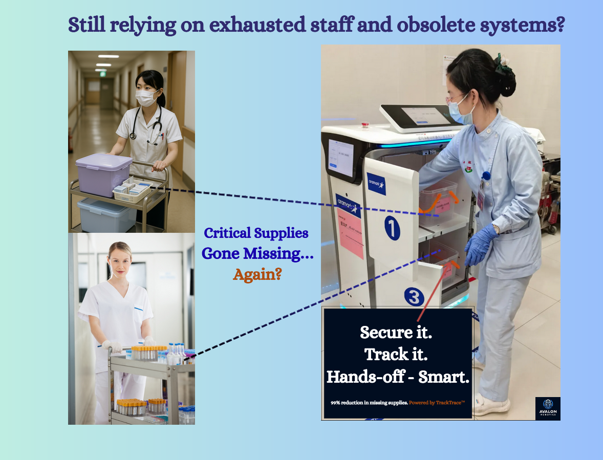 Nearly 1 in 3 frontline care hours are lost to non-clinical tasks, like chasing missing supplies or manually delivering items across sprawling facilities. Time that should go to patients is spent on logistics.